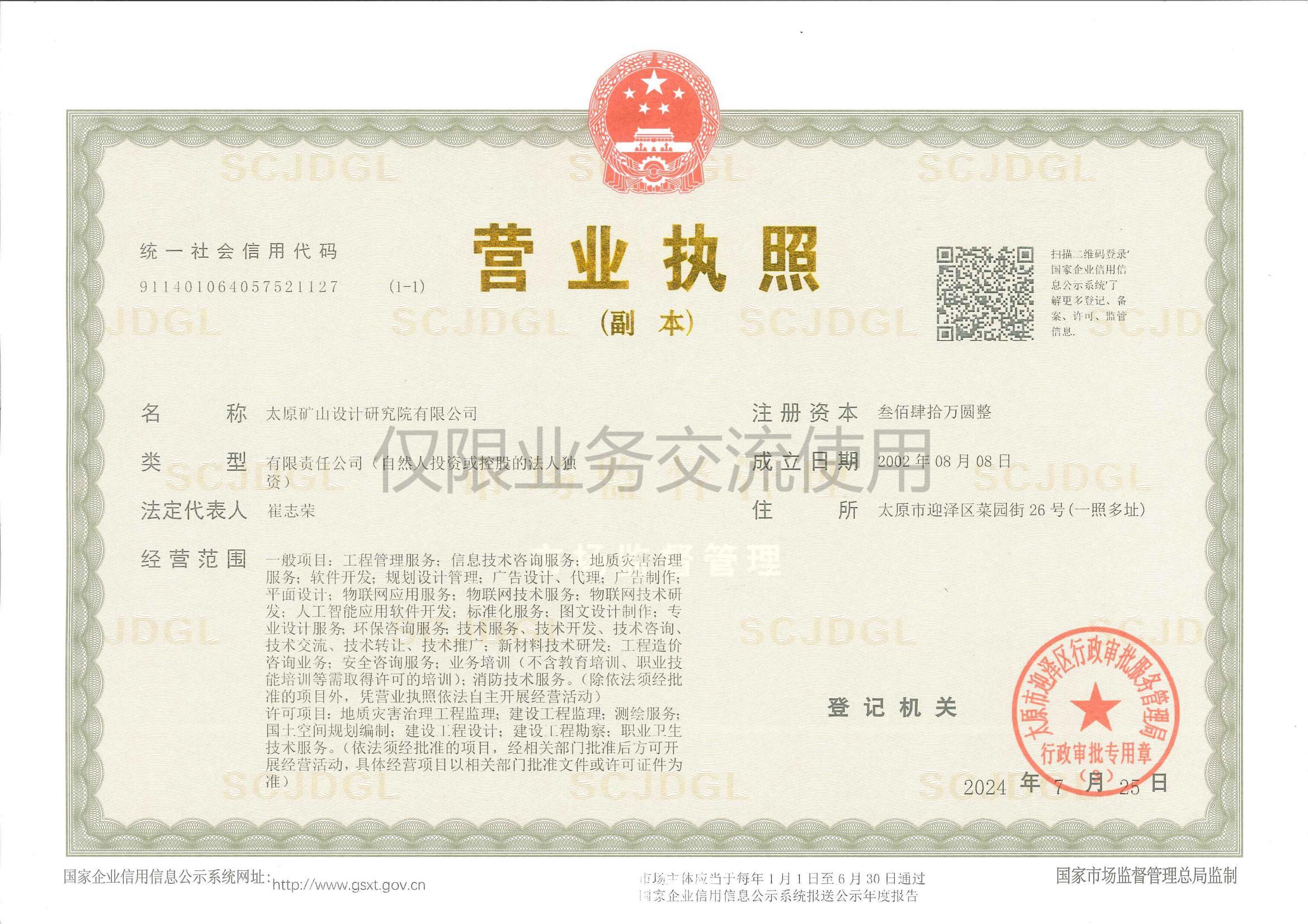 公司主要從事礦山采選尾工程設(shè)計(jì)、智能化及自動(dòng)化礦山、建設(shè)綠色礦山、工程技術(shù)咨詢、規(guī)劃設(shè)計(jì)管理、施工勞務(wù)分包、土地規(guī)劃、地質(zhì)災(zāi)害治理服務(wù)、安全生產(chǎn)技術(shù)服務(wù)、軟件開發(fā)及測(cè)繪服務(wù);煤礦、非煤礦山設(shè)計(jì);煤礦、非煤礦山、危險(xiǎn)化學(xué)品安全評(píng)價(jià)(業(yè)務(wù)范圍:煤炭開采業(yè);金屬、非金屬及其他礦采選業(yè);石油加工業(yè),化學(xué)原料、化學(xué)品及醫(yī)藥制造業(yè));非煤礦山、冶金等工商貿(mào)企業(yè)、危險(xiǎn)化學(xué)品從業(yè)單位安全生產(chǎn)標(biāo)準(zhǔn)化評(píng)審;公共場(chǎng)所衛(wèi)生、生活飲用水、公共場(chǎng)所集中中央空調(diào)通風(fēng)系統(tǒng)的檢驗(yàn)、檢測(cè)、評(píng)價(jià);職業(yè)健康檢測(cè)檢驗(yàn);建設(shè)項(xiàng)目職業(yè)病危害評(píng)價(jià)、職業(yè)危害因素檢測(cè)與評(píng)價(jià);安責(zé)險(xiǎn)技術(shù)服務(wù);業(yè)務(wù)培訓(xùn)等工作。